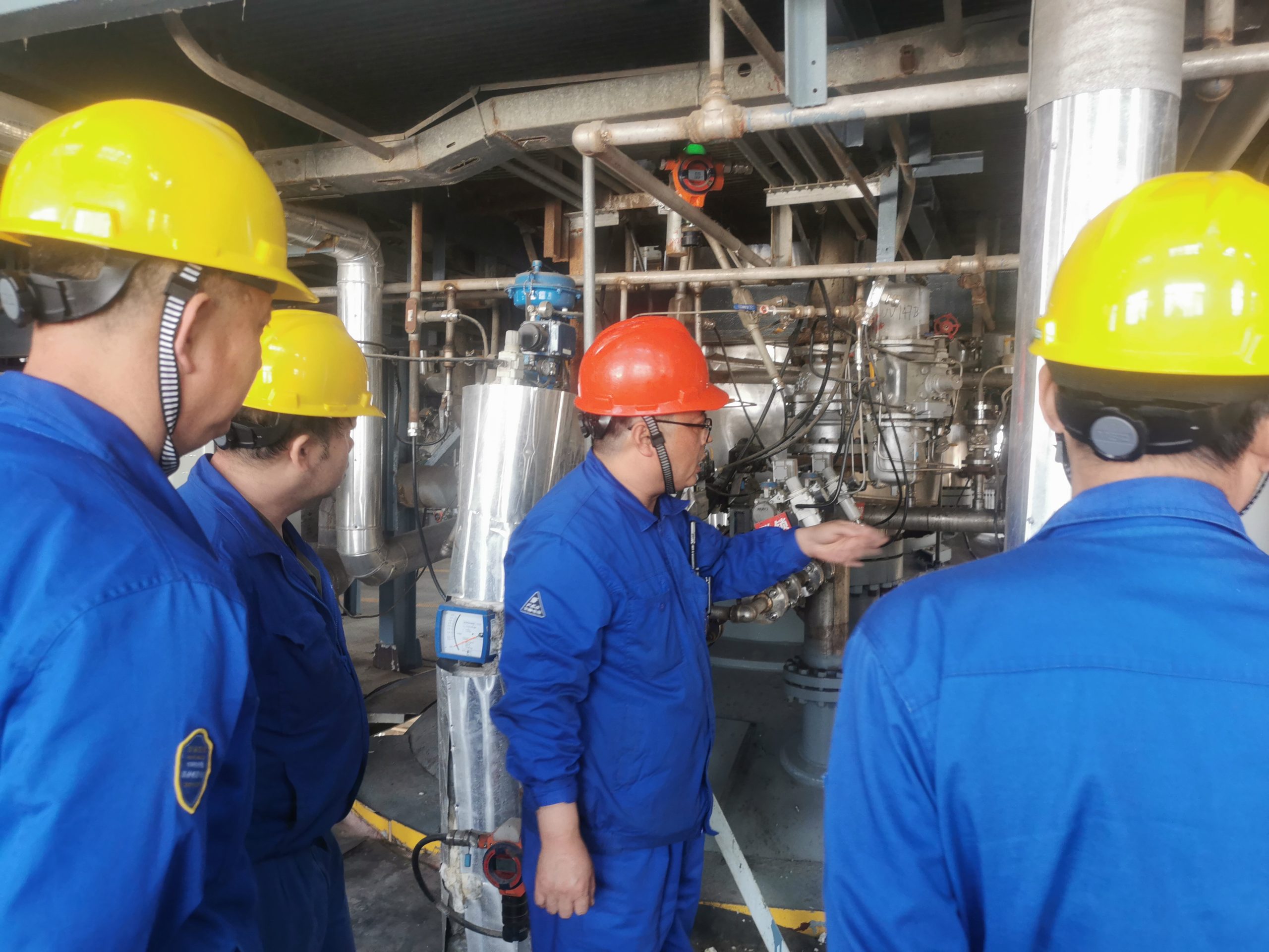 该厂结合理论培训的内容,组织人员到现场对工艺流程进行实地讲解。培训人员结合常见问题及过程处置做重点讲解,将工艺流程图及安全操作规程现场具象化,让大家了解到许多工艺操作细节。通过现场教学,让参培职工积累了直观的操作经验。